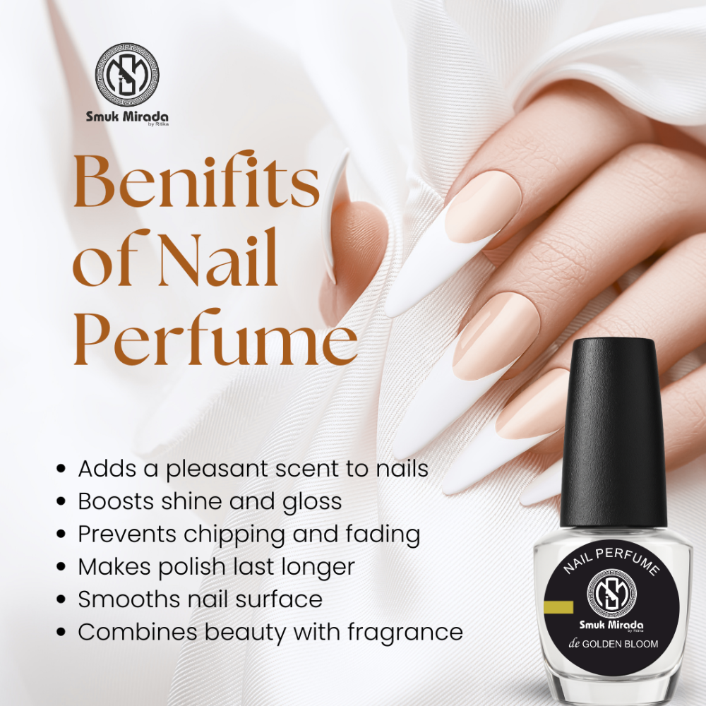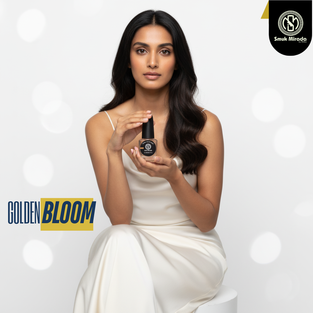 Introducing Golden Bloom Nail Perfume by Smuk Mirada, a revolutionary transparent nail perfume top coat designed especially for women who love soft florals with a confident glow. This unique innovation blends a radiant floral fragrance with a high-shine finish—transforming your nails into elegant carriers of scent and style.